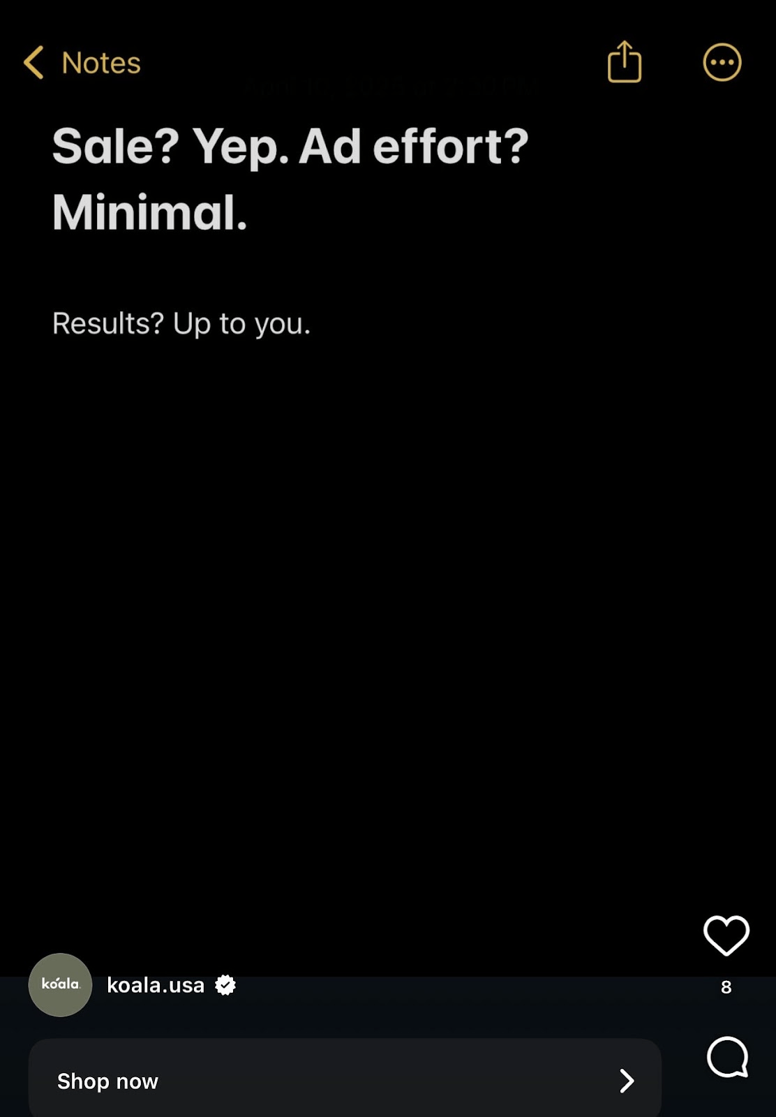 One of our favorite examples is this recent sale ad from Australian furniture brand Koala.